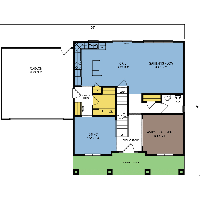 A part of our Dream Series, the Black Walnut 2-story floor plan features 3 bedrooms and 2.5 bathrooms, a 2-car garage, a footprint of 56x35 feet, and 2296 total square feet of living space. Floor Plan #DR293