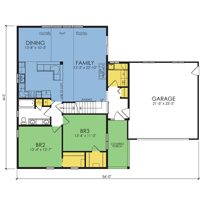 A part of our dream series, the tamarack floor plan features 3 bedrooms and 1.5 bathrooms with a foot print of 44x30 feet and 1342 total square feet of living space.