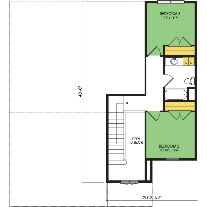 A part of our dream series, the tamarack floor plan features 3 bedrooms and 1.5 bathrooms with a foot print of 44x30 feet and 1342 total square feet of living space.