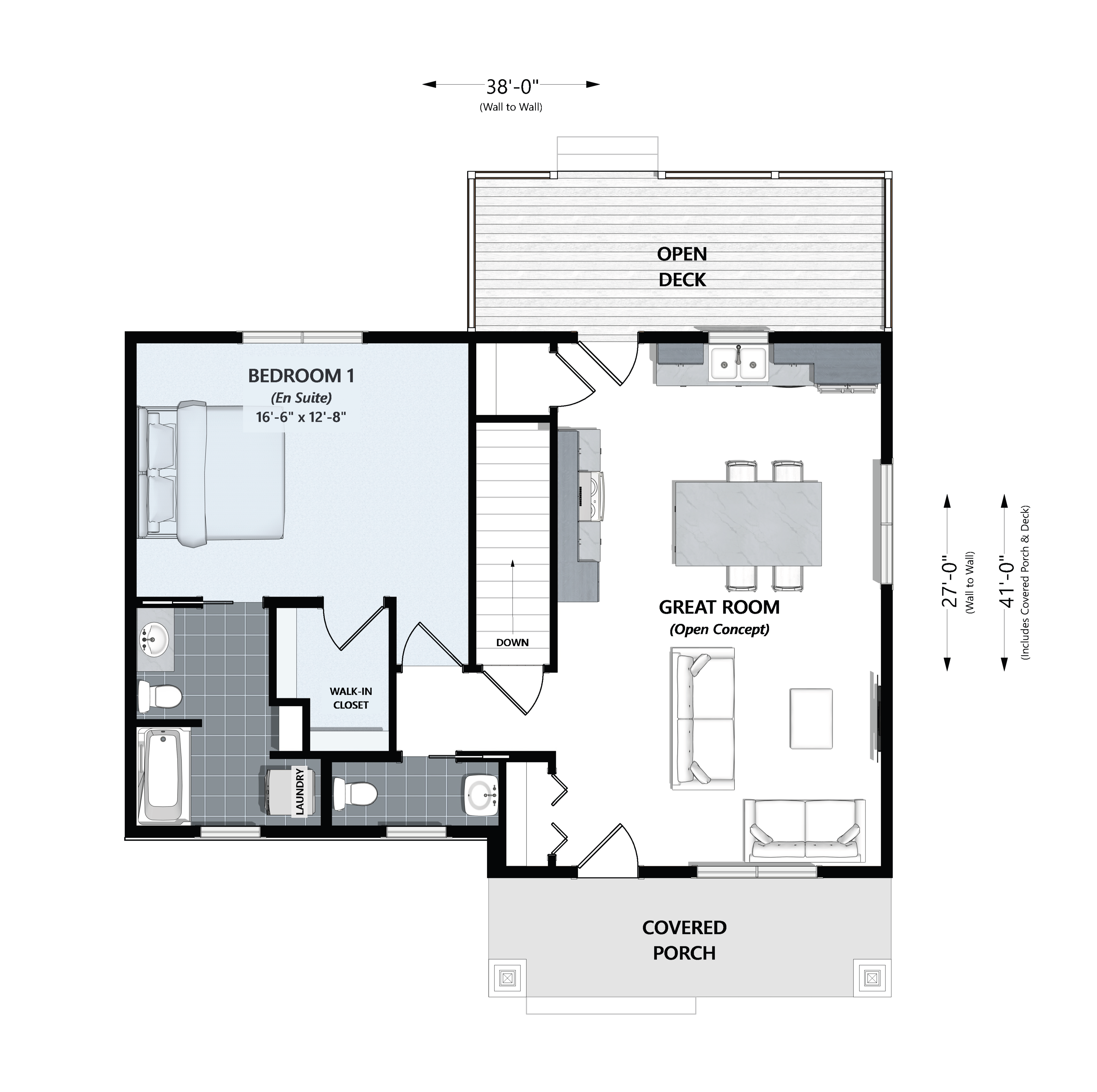 The Moonstone Floor Plan combines efficient design with future-ready flexibility to support your homeownership journey. With 1 bedroom, 1.5 bathrooms, and 990 square feet of thoughtfully planned living space, this home is ideal as a starter home, downsizing option, or right-sized custom build with room to grow.