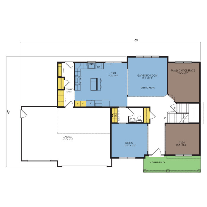 A part of our dream series, the tamarack floor plan features 3 bedrooms and 1.5 bathrooms with a foot print of 44x30 feet and 1342 total square feet of living space.