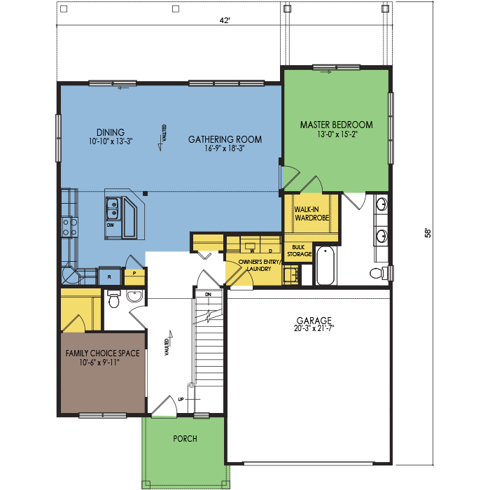 A part of our dream series, the tamarack floor plan features 3 bedrooms and 1.5 bathrooms with a foot print of 44x30 feet and 1342 total square feet of living space.