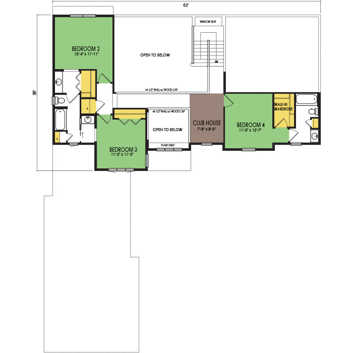 A part of our designer series, the springhaven floor plan features 4 bedrooms and 3.5 bathrooms with a foot print of 64x80 feet and 3170 total square feet of living space. Floor Plan #DT391