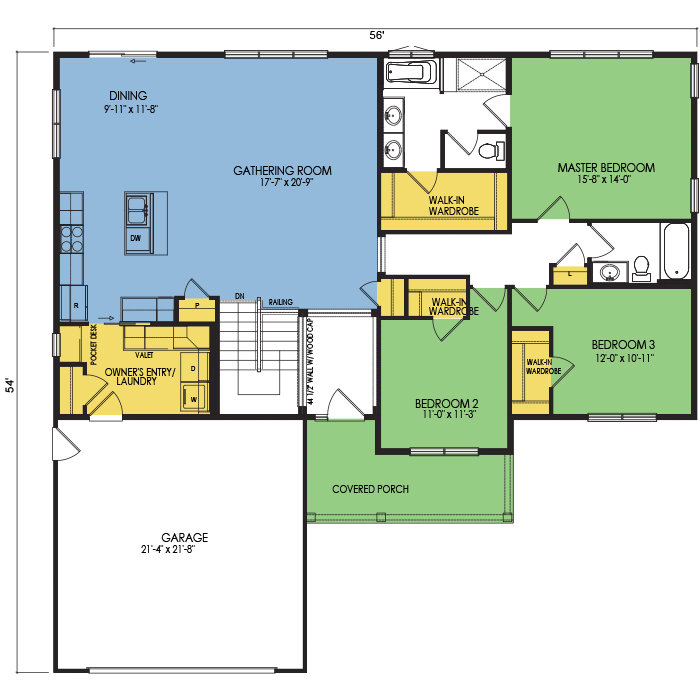 A part of our Dream Series, the Sugar Maple floor plan features 3 bedrooms, 2 bathrooms, a 2 car garage, a footprint of 56x54 feet, and 1828 total square feet of living space. Floor Plan #DR167