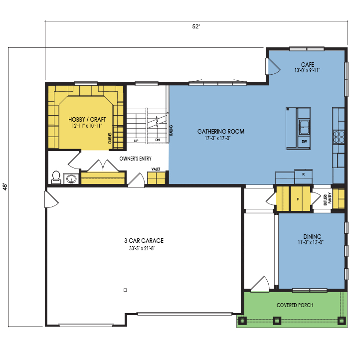 A part of our dream series, the tamarack floor plan features 3 bedrooms and 1.5 bathrooms with a foot print of 44x30 feet and 1342 total square feet of living space.